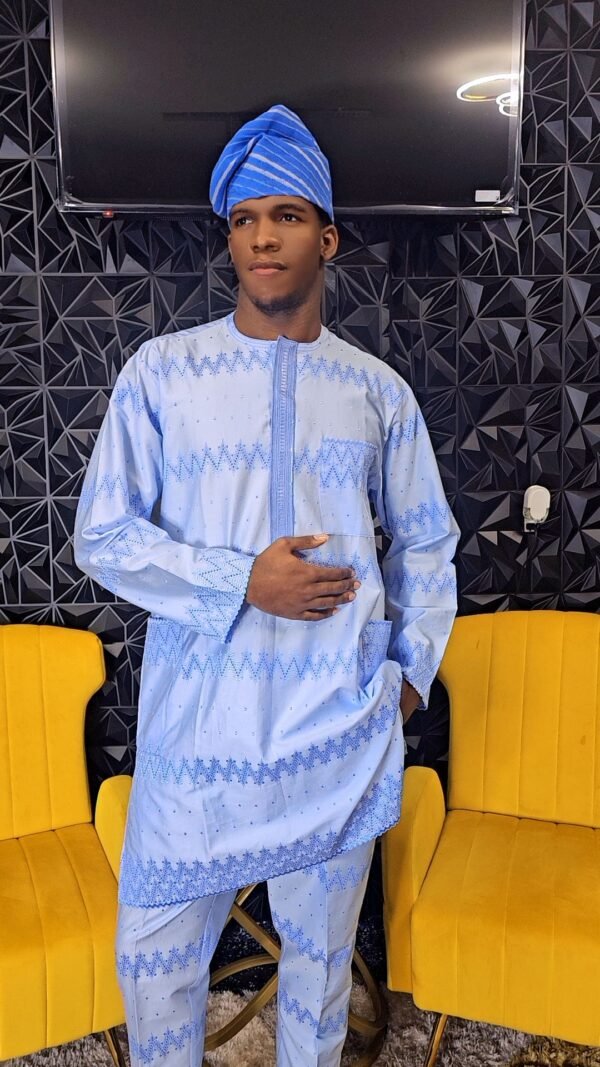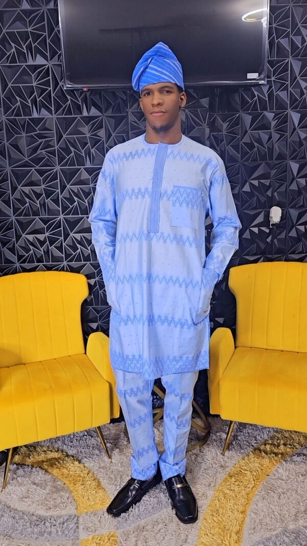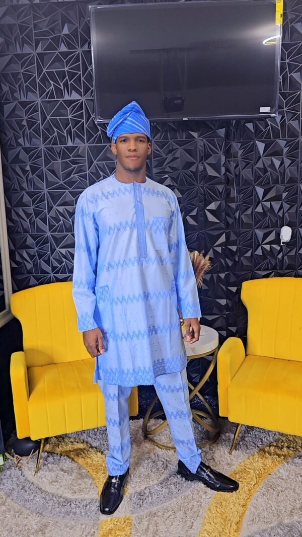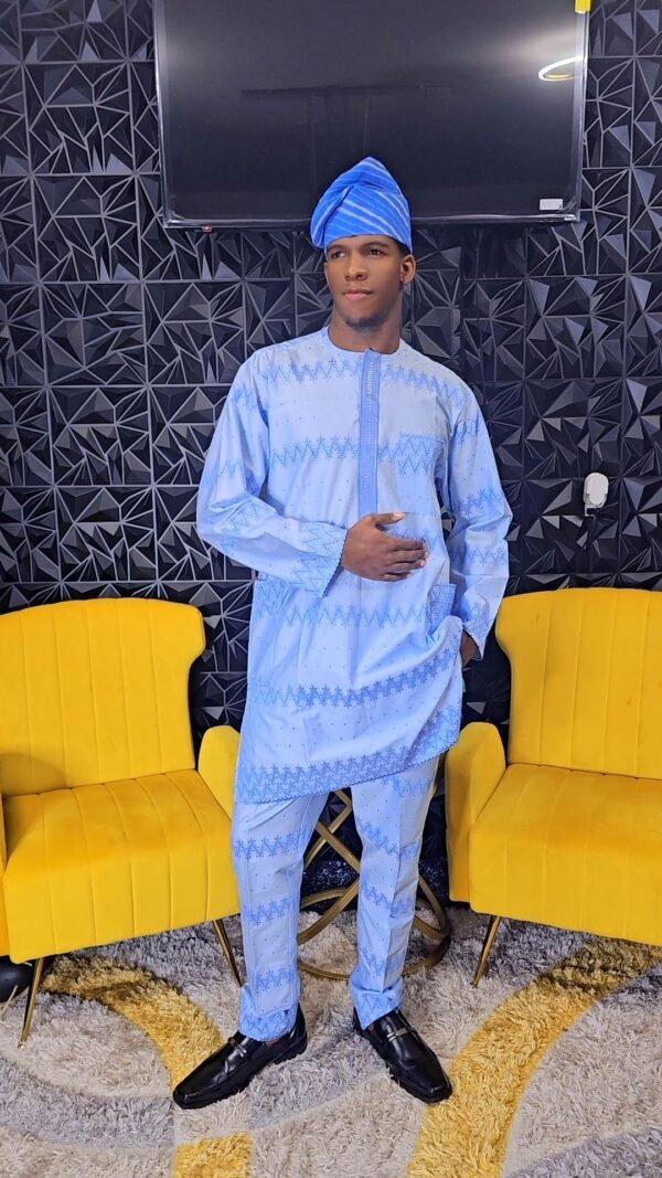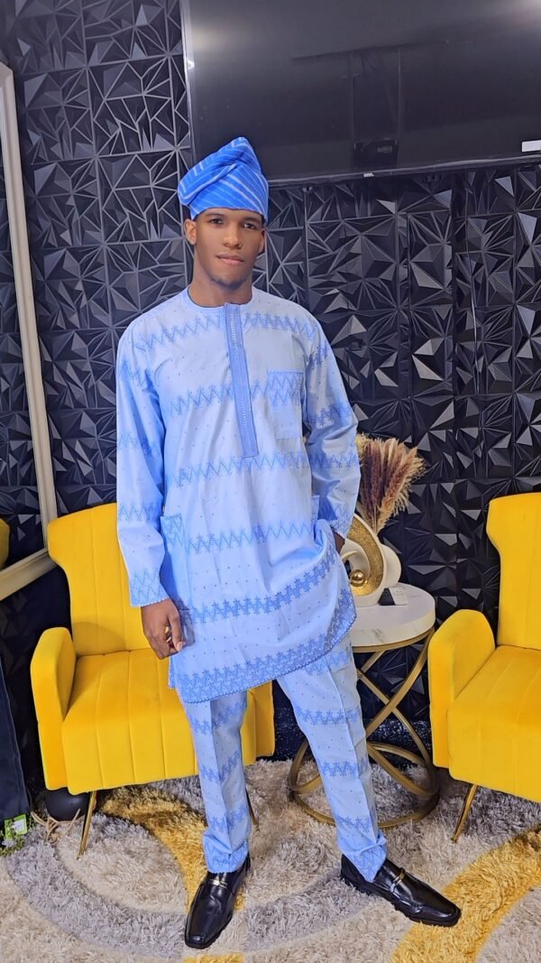 Blue African Men’s 2 Piece Kaftan Polished Lace Set